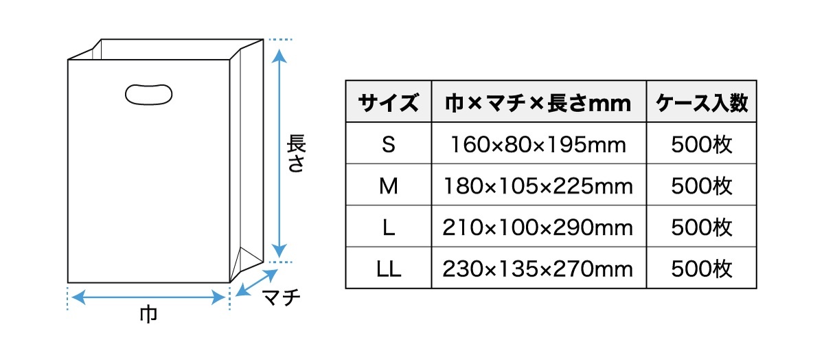 持ち手穴付角底袋(イーグリップ)のサイズサンプル(無地)は、有料でのご案内となります。
